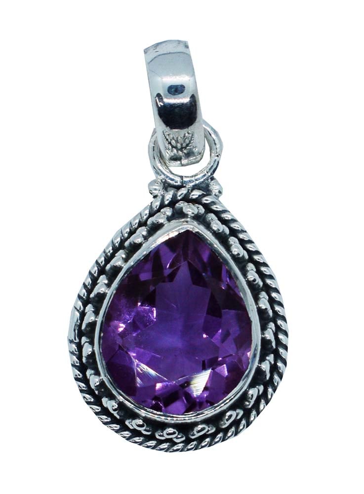 Pendant Fancy Tear Drop With Bobbled Edging And Amethyst Cut Stone L2.7cm 925 Sterling Silver