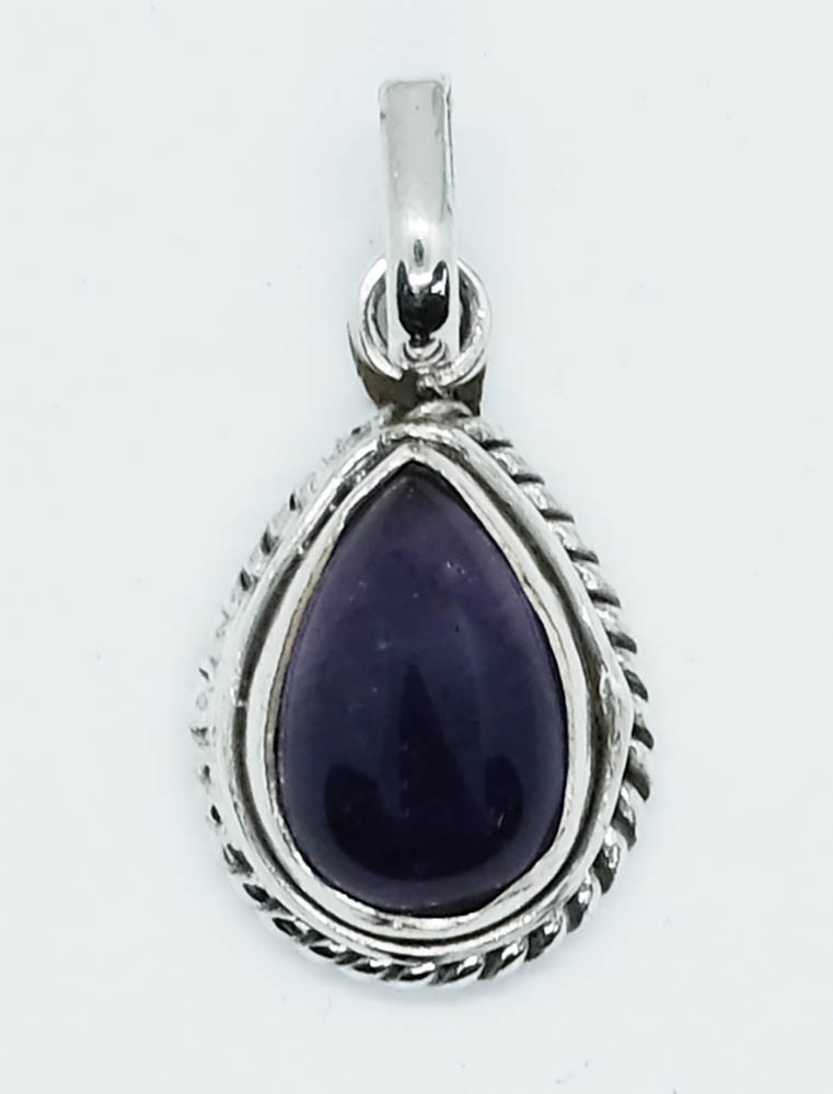 Silver Pendant Amethyst Pear Shape Cabochon 8x12mm