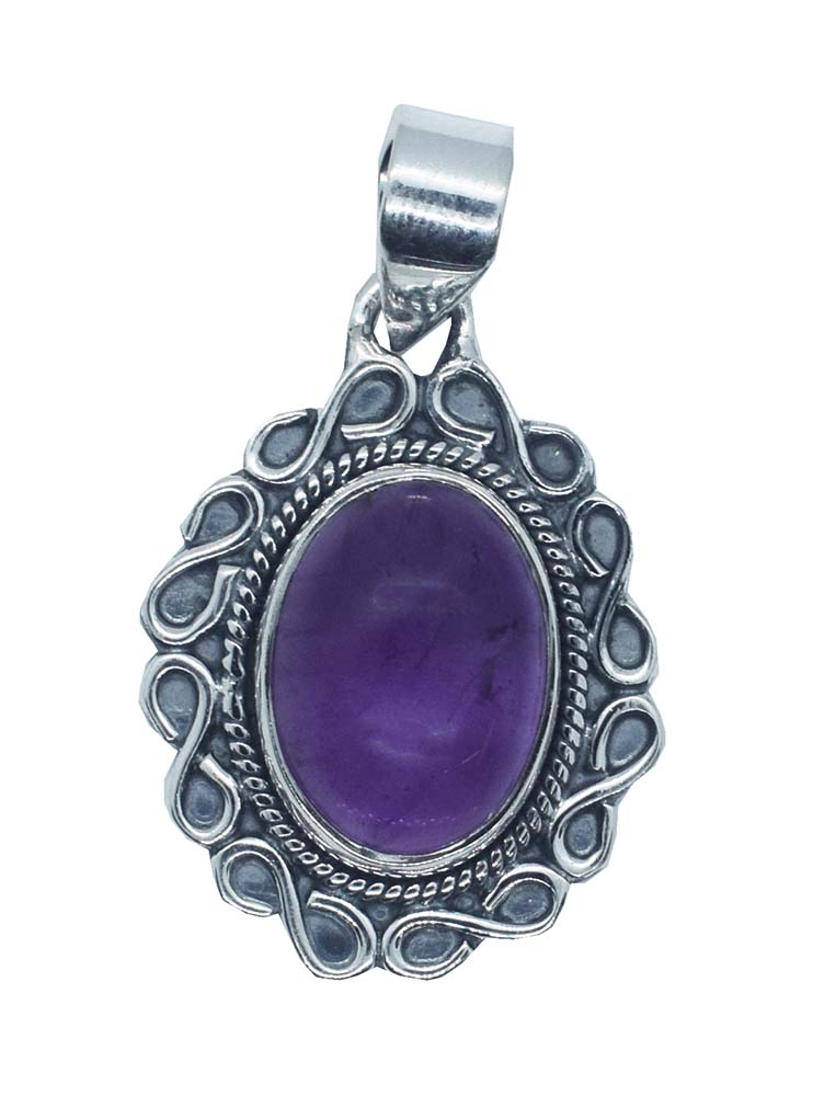 Pendant Amethyst Cabochon Oval Stone With Swirly Border L3.2cm From The Top 925 Sterling Silver