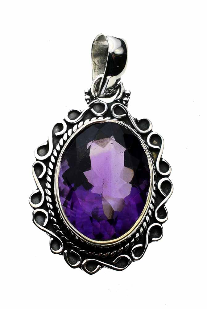 Pendant Amethyst Cut Oval Stone With Swirly Border L3.2cm From The Top 925 Sterling Silver