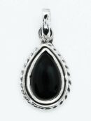 Silver Pendant Black Onyx Pear Shape Cabochon 8x12mm