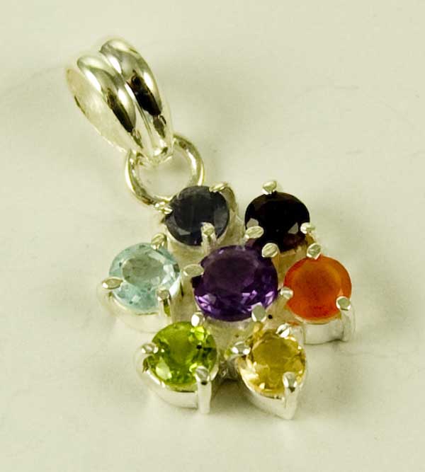 Pendant Flower With 7 Chakra Stones Length From The Top 2.5cm 925 Sterling Silver
