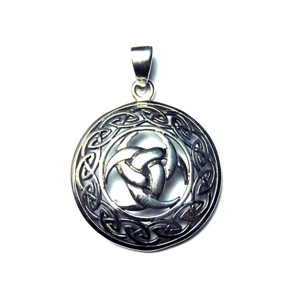 Pendant Circle Cut Celtic Style With Moon Design In Centre L3.5cm 925 Sterling Silver