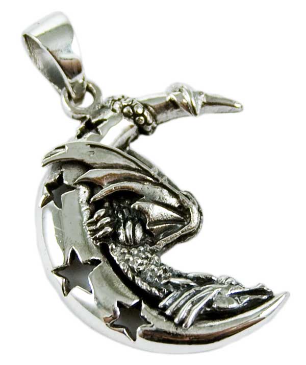 Pendant Dragon On Moon With Stars 925 Sterling Silver L3.5cm Designed By Lisa Parker