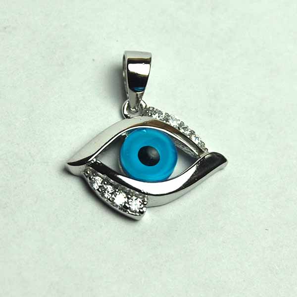 Pendant Evil Eye With Blue Stone And Clear Cubic Zirconia Stones W2cm 925 Sterling Silver
