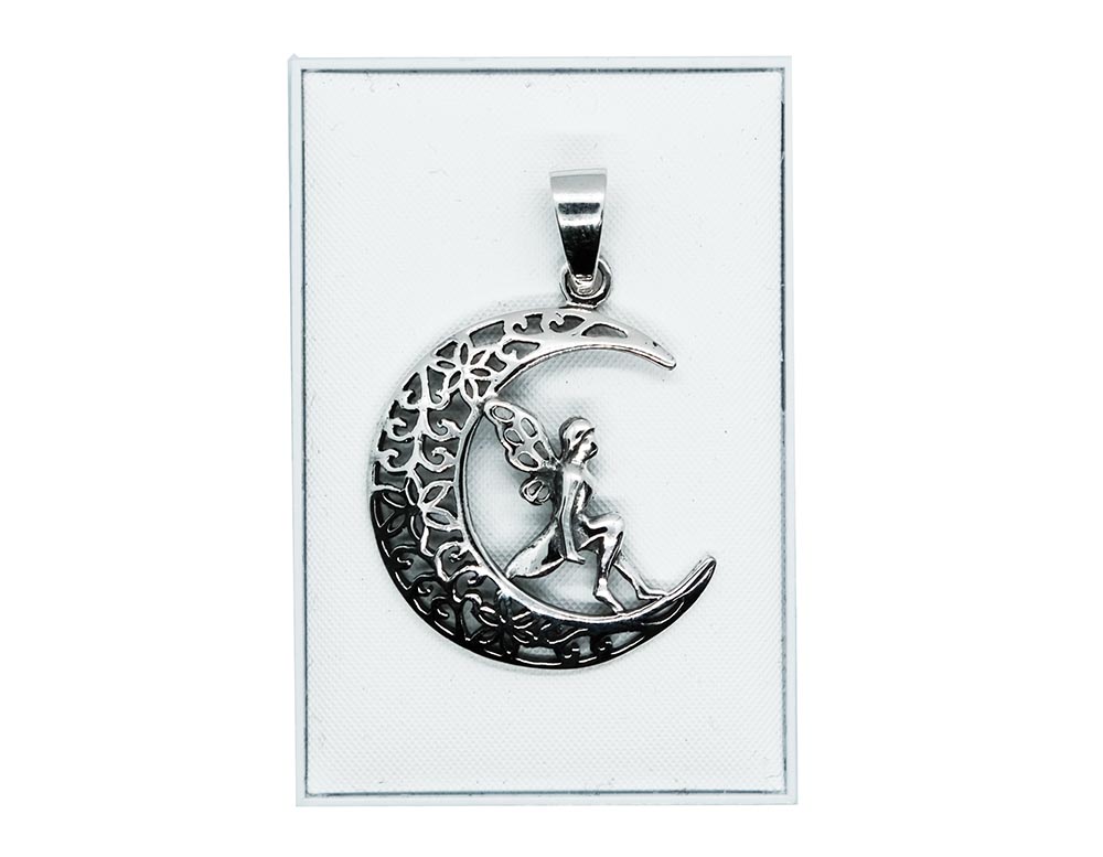 Silver Pendant Fairy on Crescent Moon Hallmarked Sterling Silver 925