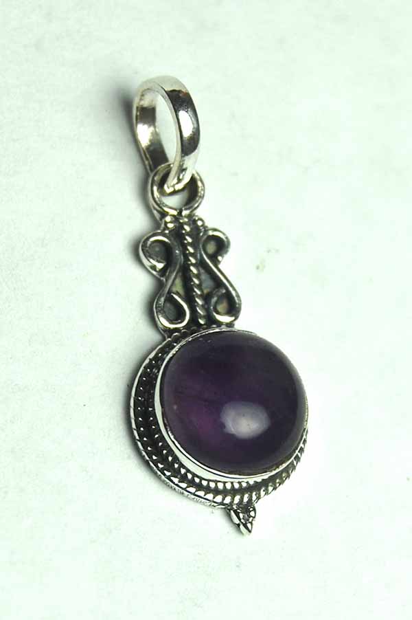Pendant Fancy Drop With Plain Circle Amethyst Stone L3cm 925 Sterling Silver