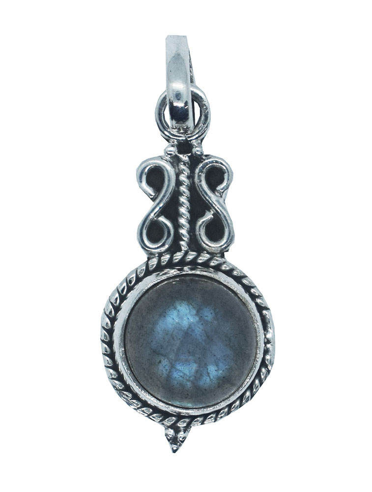 Pendant Fancy Drop With Plain Circle Labradorite Stone L3cm 925 Sterling Silver