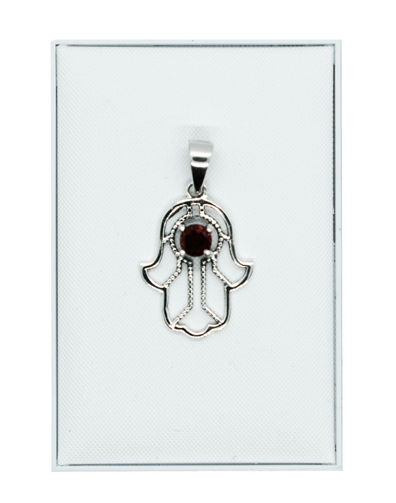 Silver Pendant Fattima Hand Garnet 925 Sterling Silver, Approx. 24 x 14.5mm