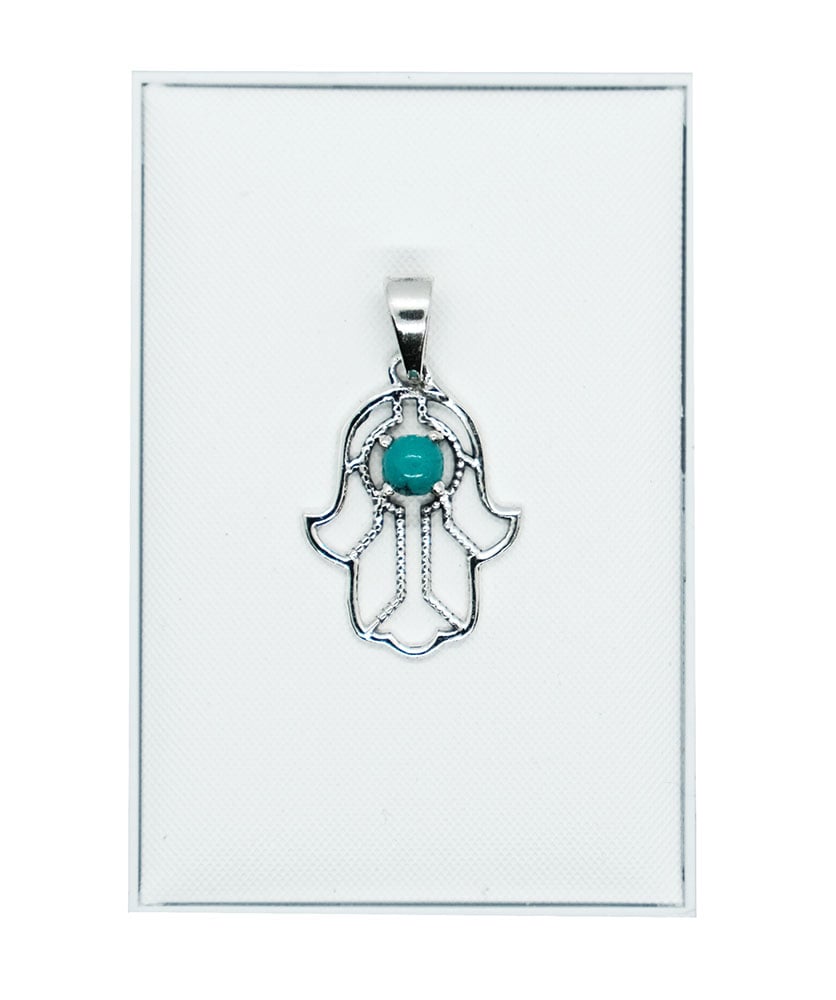 Silver Pendant Fattima Hand Turquoise 925 Sterling Silver, Approx. 24 x 14.5mm
