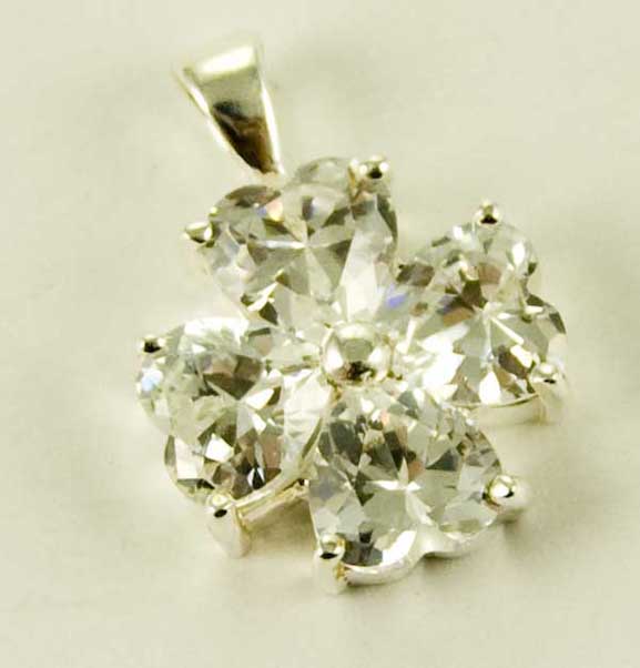 Pendant Flower Clear Cut Heart Shape Stones 925 Sterling Silver