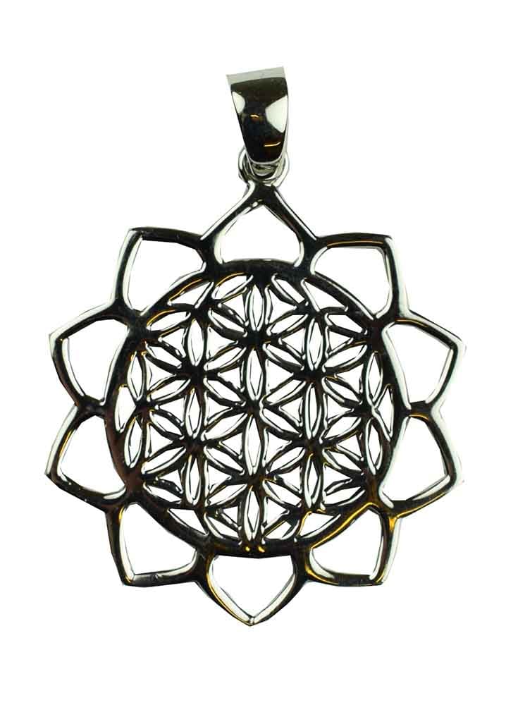 Pendant Flower Of Life With Petals Around Edge 925 Sterling Silver