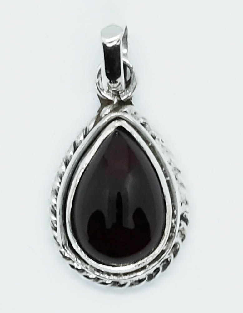 Silver Pendant Garnet Pear Shape Cabochon 8x12mm