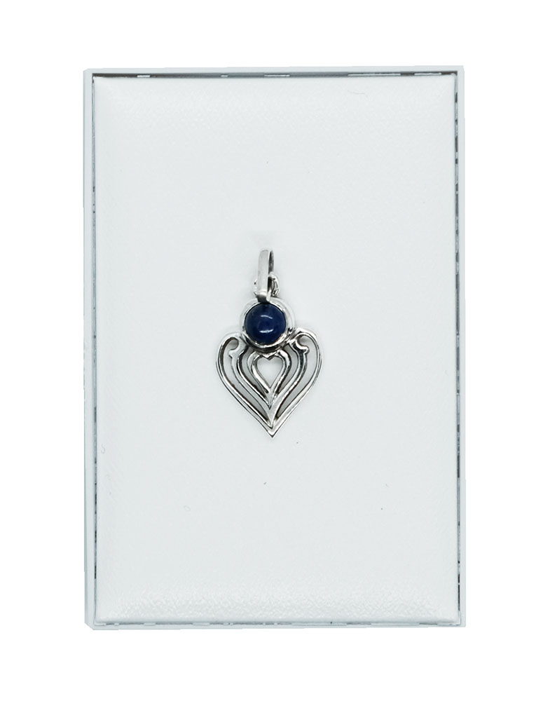 Silver Pendant with Round Cabochan Lapis Stone Embedded on Heart Shaped Border 925 Sterling Silver