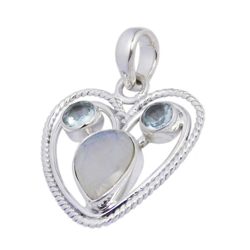 Pendant Heart With Topaz Tear Drop And Rainbow Circle Cut Stones L3.5cm. Approx Weight Is 18 Grams 925 Sterling Silver
