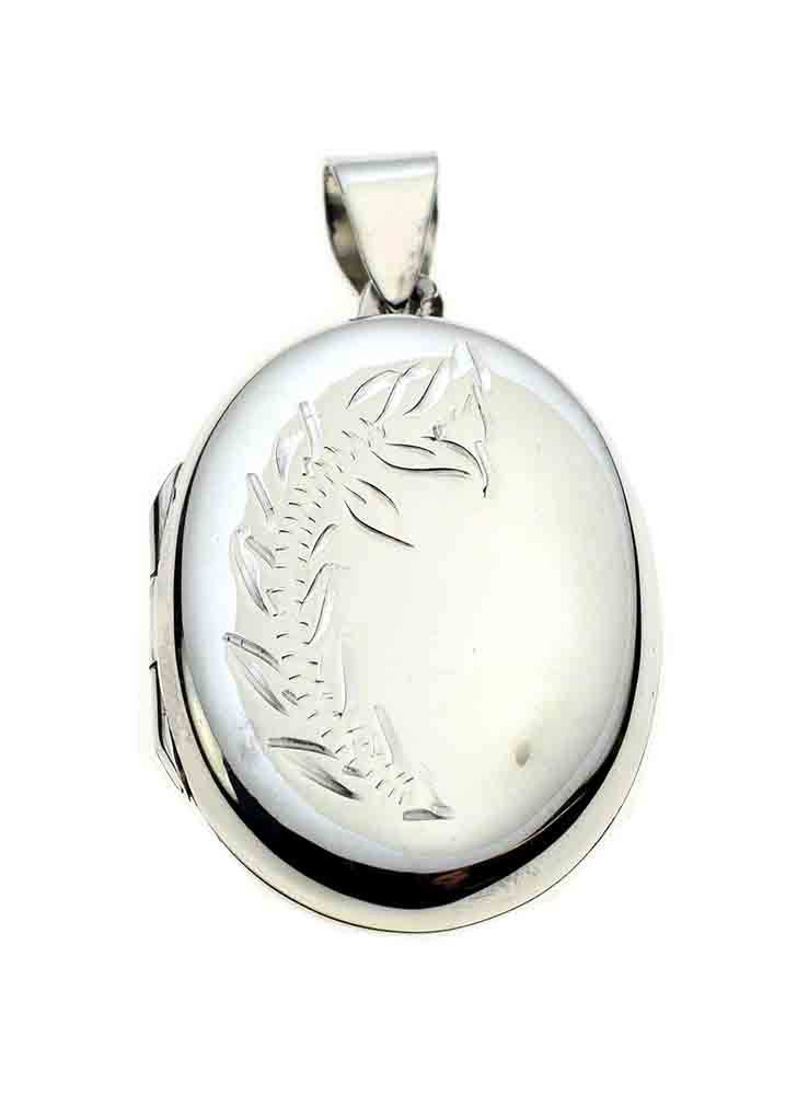 Pendant Locket Oval With Flower Engraved Design L3.5cm 925 Sterling Silver