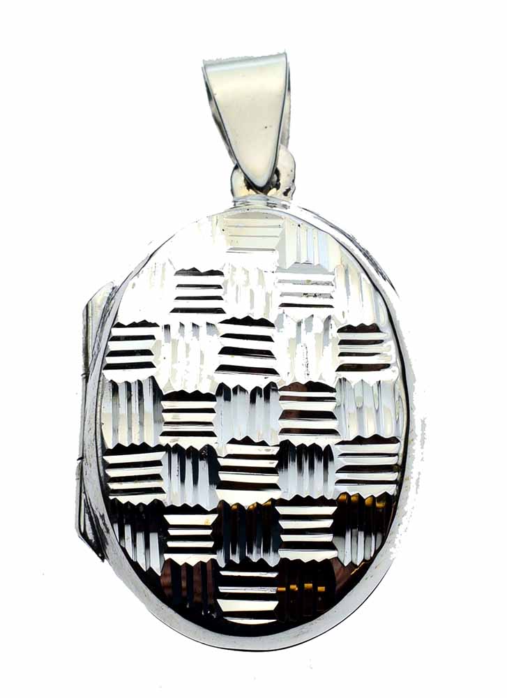 Pendant Locket Oval With Cut Engraved Design L3cm 925 Sterling Silver