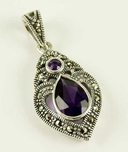 Pendant Marcasite Heart With Fire Opal Tear Drop Stone L3.5cm 925 Sterling Silver