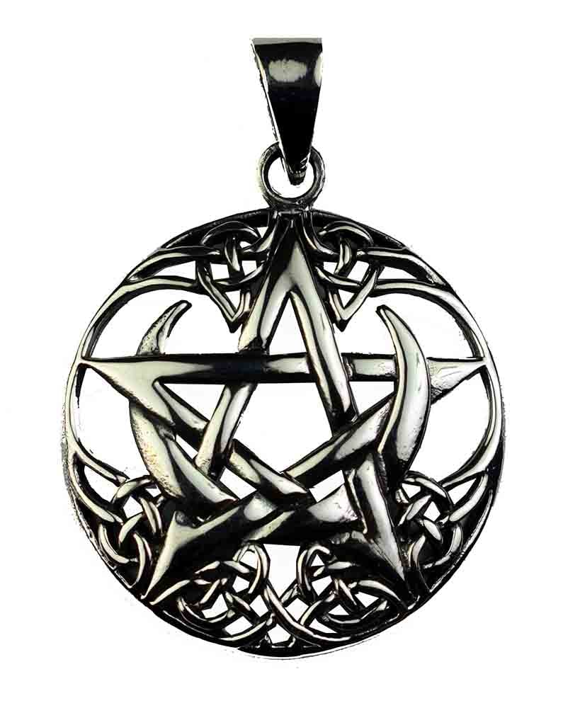 Silver Pendant Moon in a Pentagram 2.5cm H
