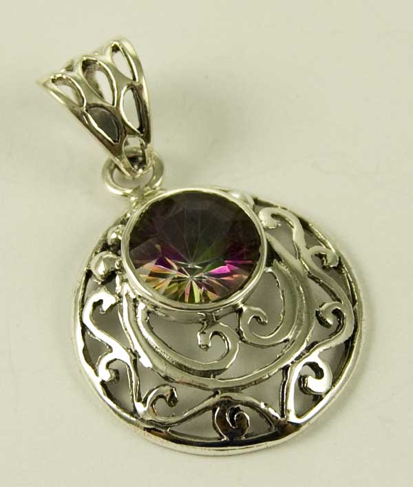 Silver Pendant Fancy Circle Swirl Cut Border With Mystic Quartz Cut Stone Length From The Top 4cm 925
