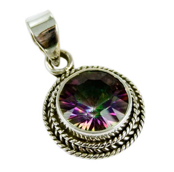 Pendant Mystic Quartz Circle Stone With Flat Base And Rope Design Edging L2.8cm From The Top 925 Sterling Silver