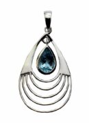 Silver Pendant With Central Oval Blue Topaz Stone 925 Sterling Silver