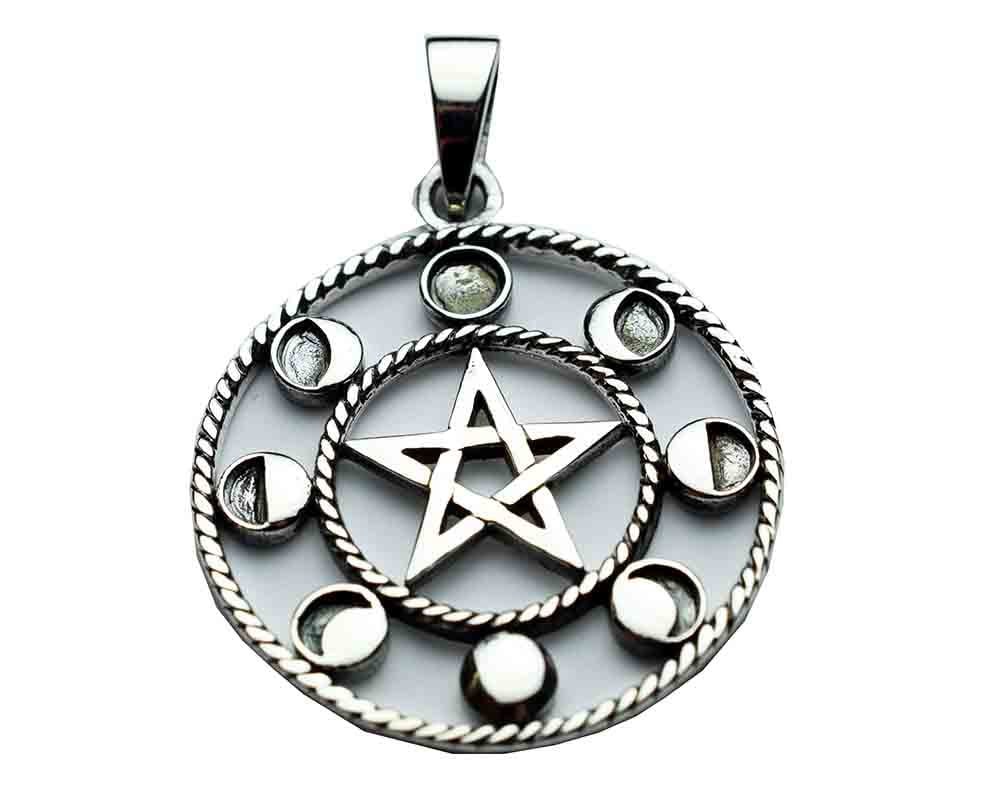 Pendant Pentagram Circle 3.5cm 925 Sterling Silver