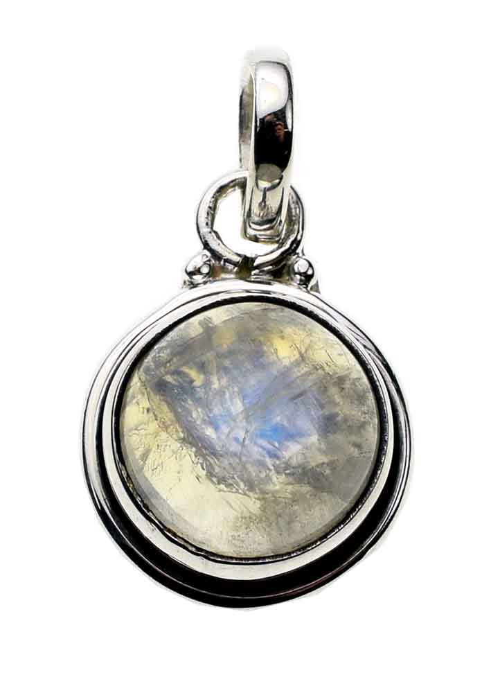 Pendant Circle Drop Plain Rainbow Stone L2cm 925 Sterling Silver