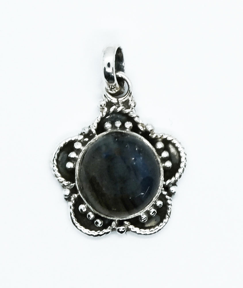 Silver Pendant Round Flower Labradorite 2cm