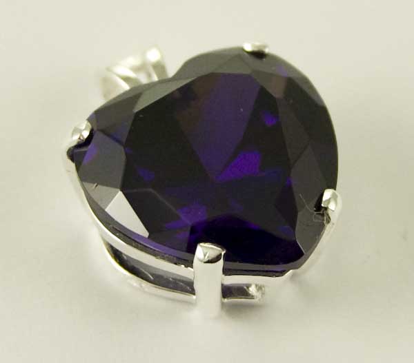 Pendant Heart With Purple Faceted Stone H2.5XW1.7cm 925 Sterling Silver