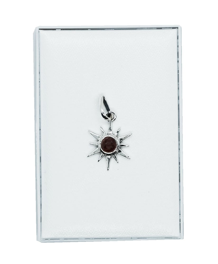 Silver Pendant Sun with Round Cabochan Garnet 925 Sterling Silver