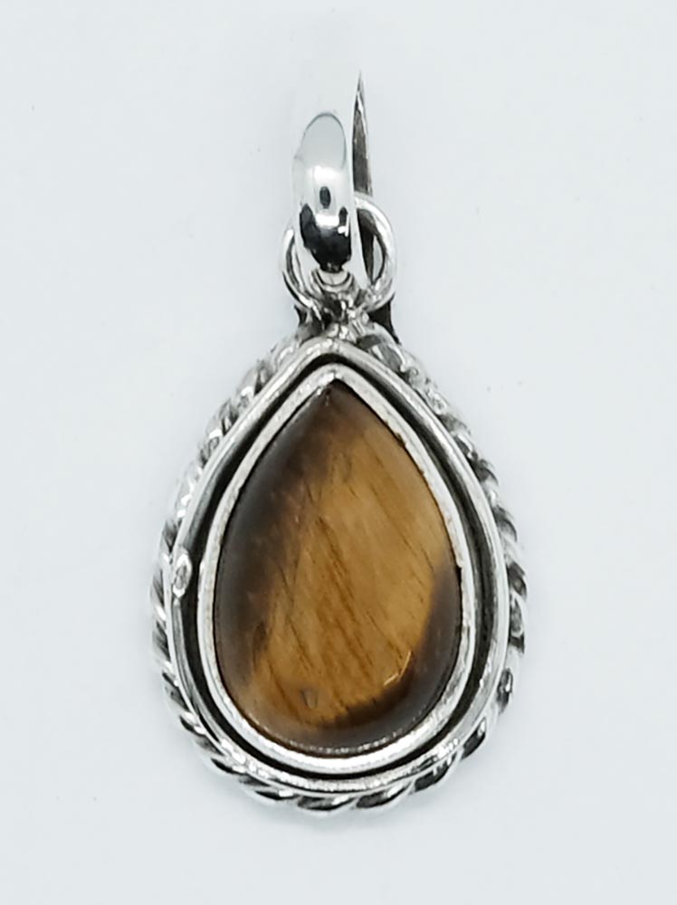 Silver Pendant Tiger Eye Pear Shape Cabochon 8x12mm