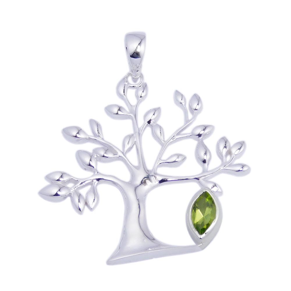 Pendant Tree With Peridot Cut Eye Shape Stone 925 Sterling Silver
