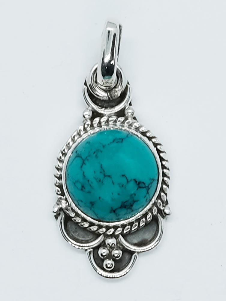 Silver Pendant Turquoise Cabochon 10×10 mm