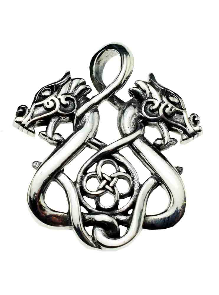 Pendant Celtic Twin Dragons Viking Style L2.7cm 925 Sterling Silver