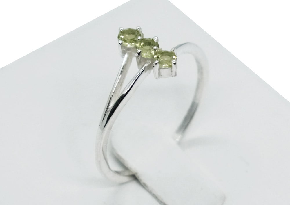Silver Ring 3 Stones Peridot 925 Sterling Silver