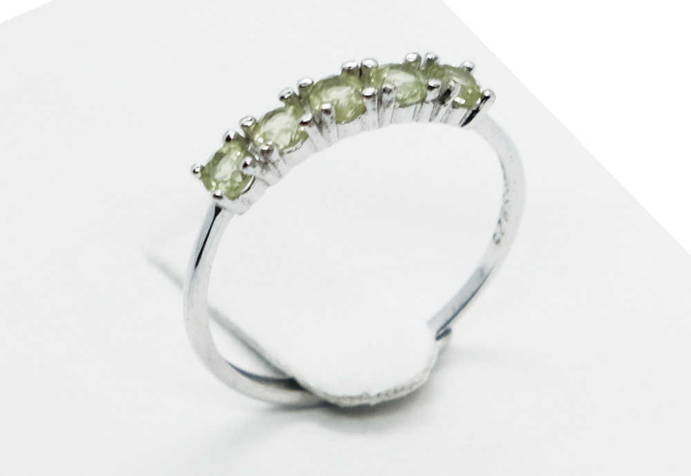 Silver Ring 5 Stones Peridot, Adjustable Size (N-R)