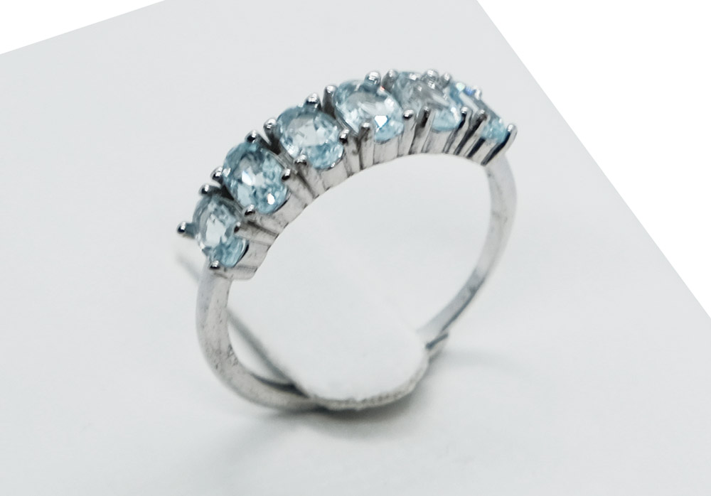 Silver Ring 6 Stones Topaz, Adjustable Size (N-R)
