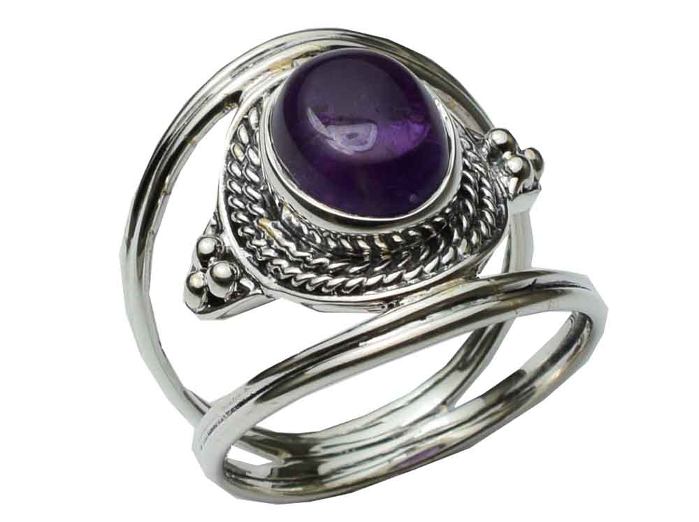 Ring Amethyst Cab Oval Shape Stone With Rope Style Border 925 Sterling Silver