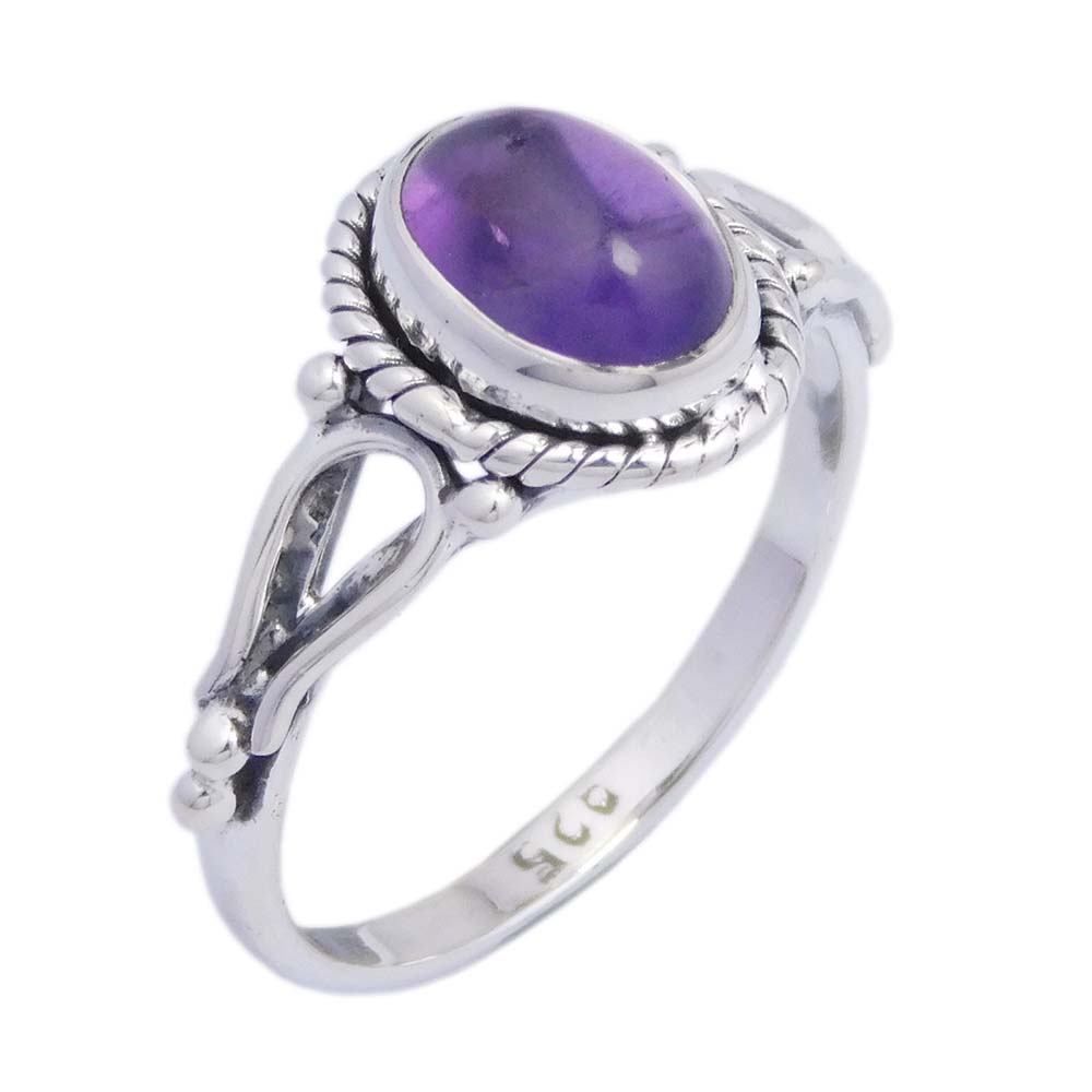 Ring Amethyst Oval Raised Stone With Rope Style Border And Hook Design At The Sides. Approx Weight Is 7 Grams 925 Sterling Silver