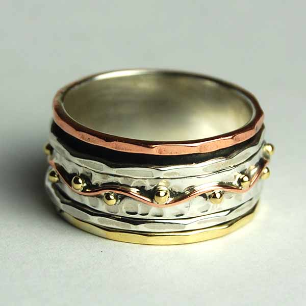 Ring Band Wide Spinning Ring Wavy Design In Centre 925 Sterling Silver