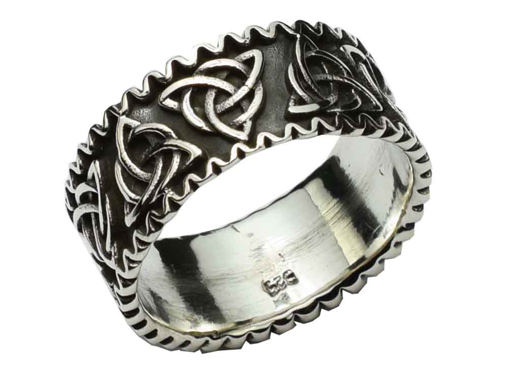 Ring Band Triquetra Knot Design With Wavy Edging 925 Sterling Silver