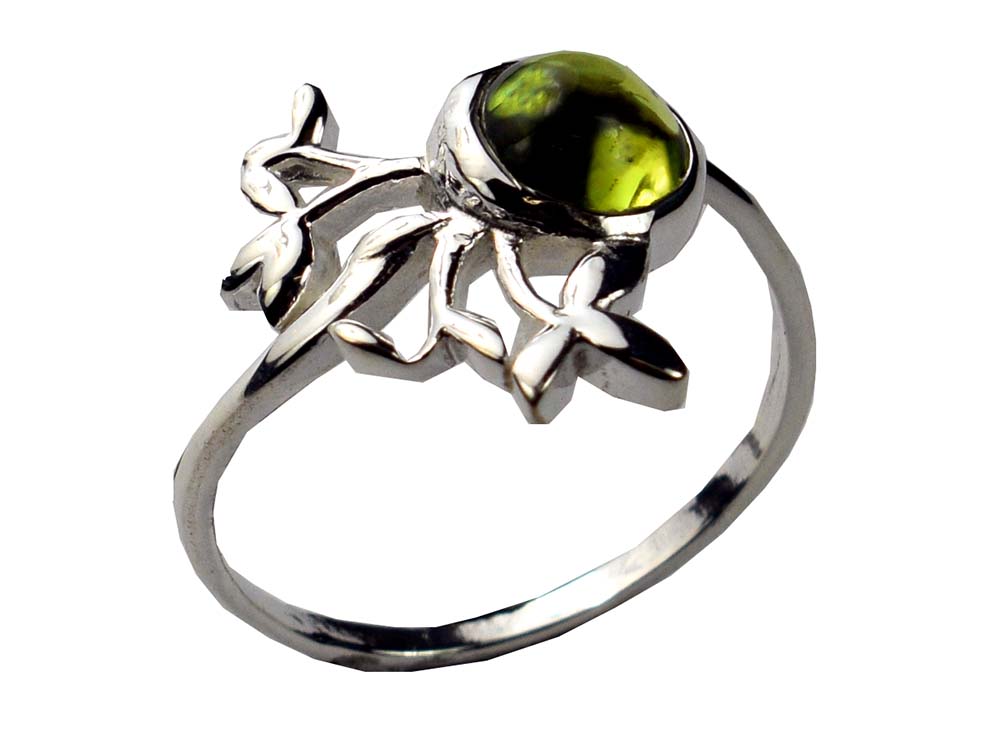 Silver Ring Butterfly with Central Round Peridot Stone 925 Sterling Silver