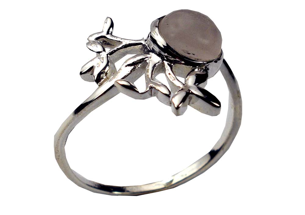 Silver Ring Butterfly with Central Round Rose Quartz Stone 925 Sterling Silver
