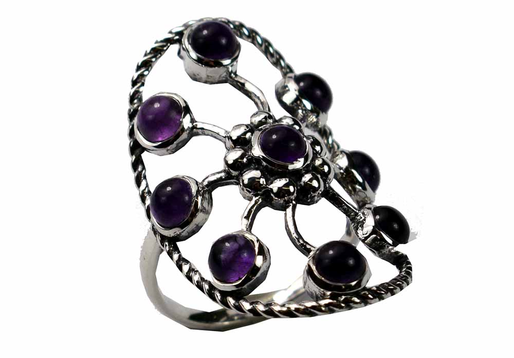 Silver Ring Chakra Circle in Amethyst Colour 925 Sterling Silver