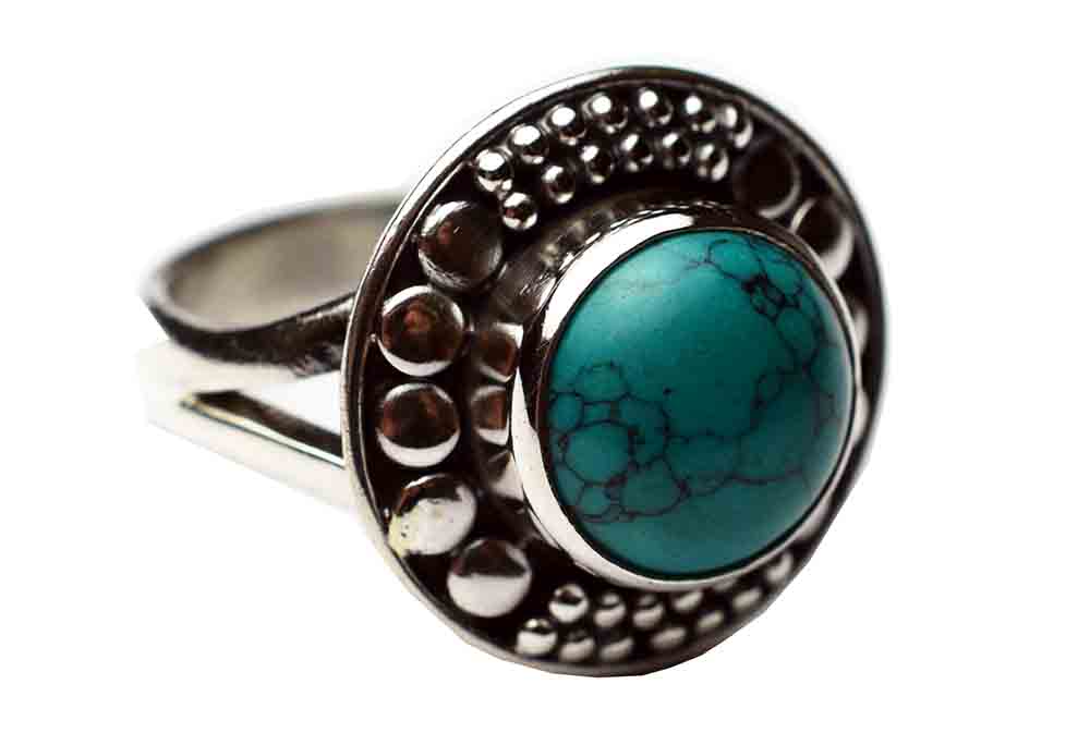Ring Circle Turquoise Round Stone 925 Sterling Silver