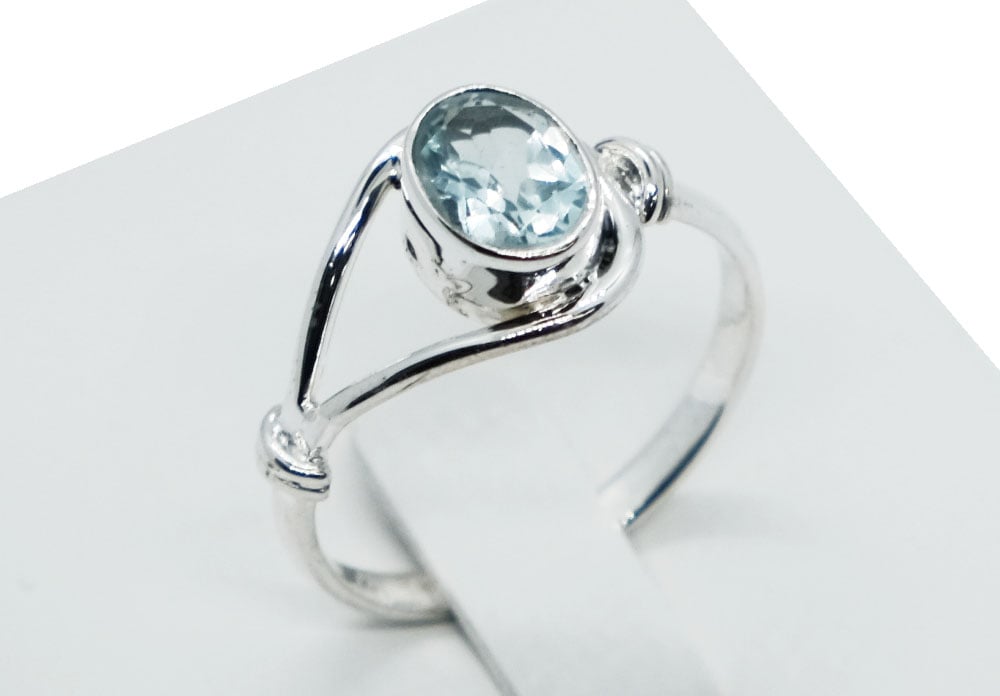 Silver Ring With Cut Oval Blue Topaz Stone with Pear Shape Shoulder 925 Sterling Silver