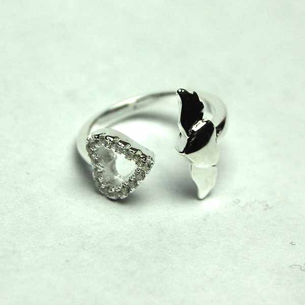 Ring For Top Finger Cut Heart With Cubic Zirconia Stones 925 Sterling Silver
