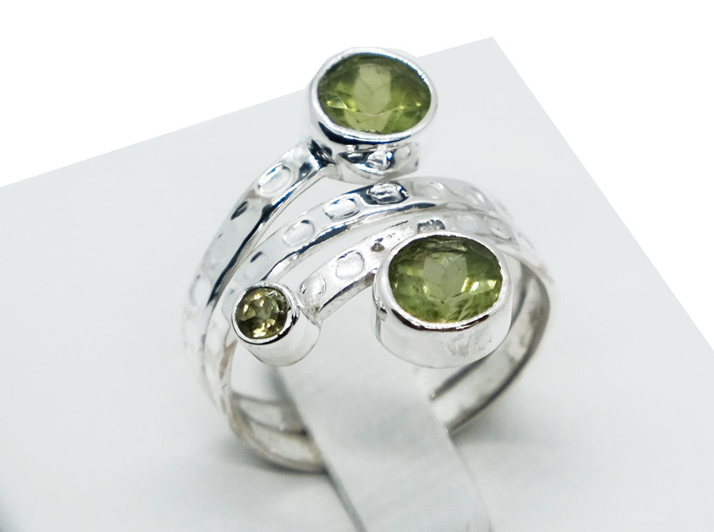 Silver Ring Round Cut Peridot Stone 925 Sterling Silver