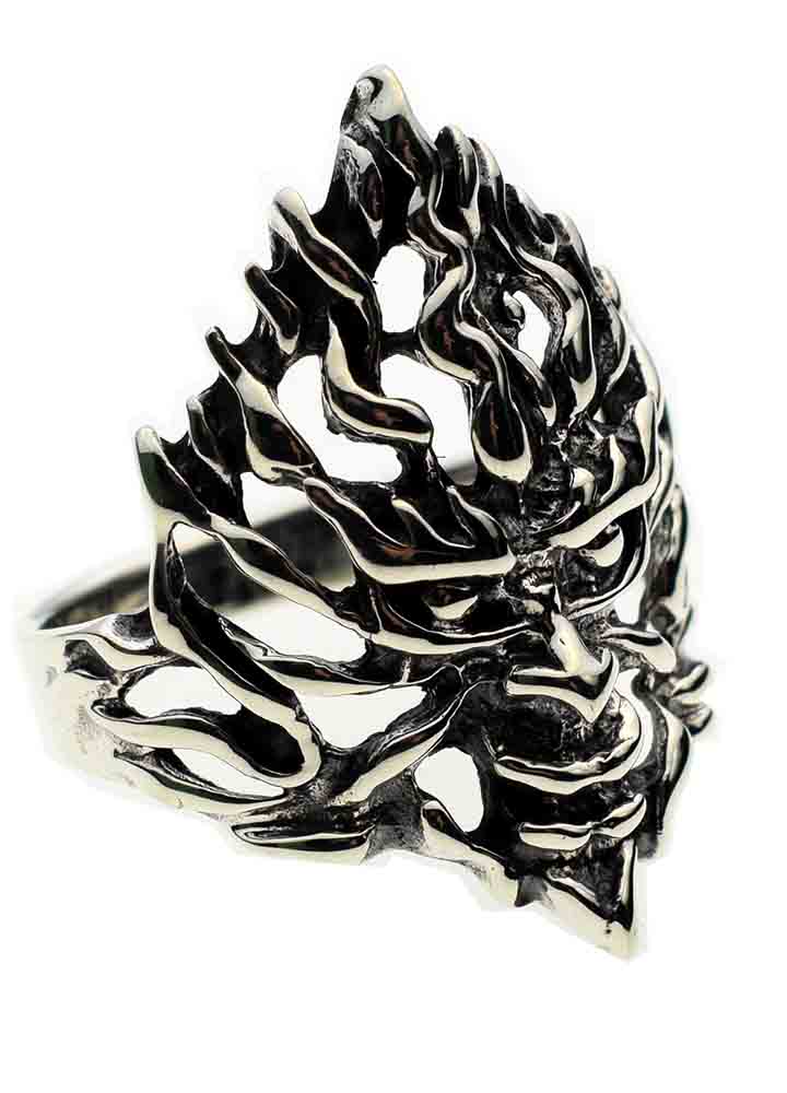 Ring Evil Flaming Face 925 Sterling Silver